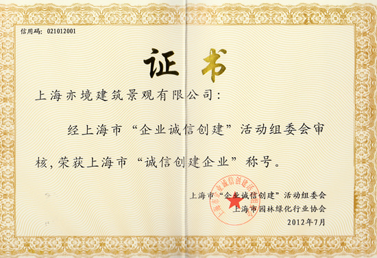 上海市“誠信創(chuàng)建企業(yè)”稱號