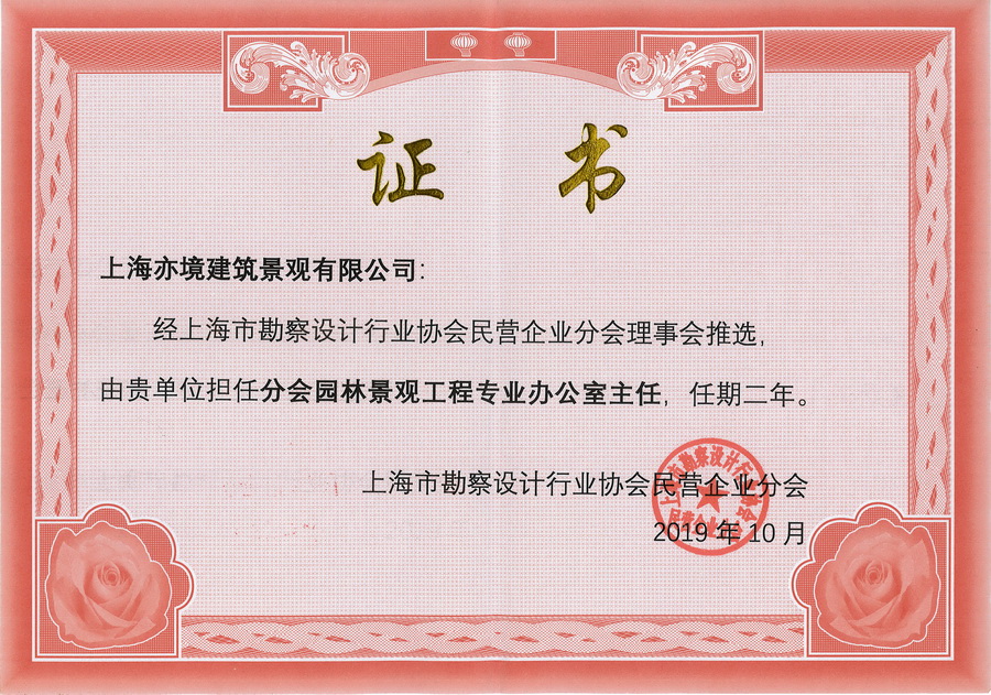 上海市勘察設(shè)計(jì)行業(yè)協(xié)會民營企業(yè)分會園林風(fēng)景工程專業(yè)辦公室主任