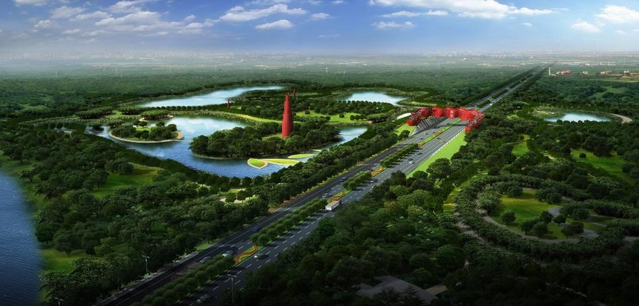 項(xiàng)目規(guī)模:道路全長12.6km,中分帶寬4m,兩側(cè)綠化帶各寬20m,綠化面積為55.4公頃。