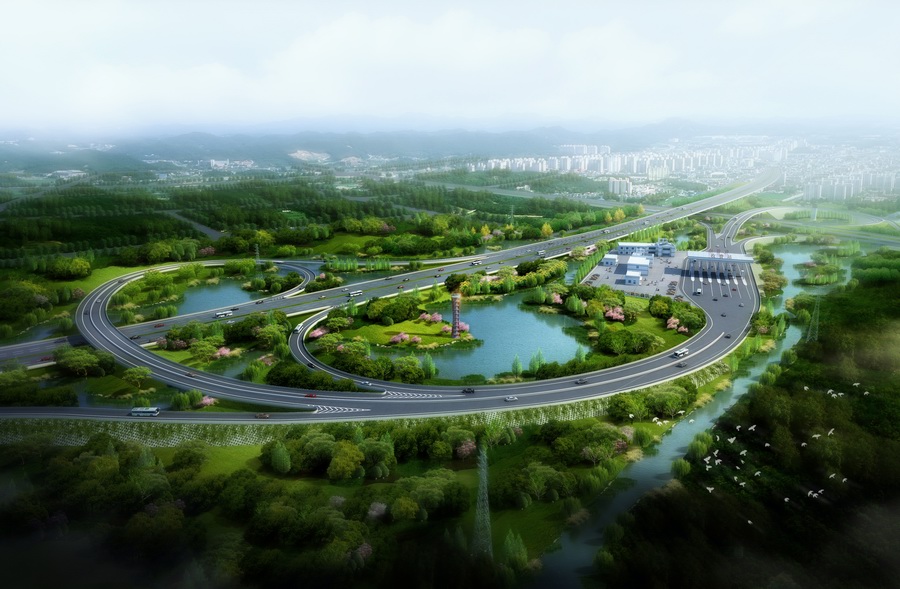 城際快速路此處定義為城市與城市之間車速大于80km/h的快速干道,其車行速度較快,道路綠化景觀要求簡潔、明朗,既不影響駕車視線,又有一定的景觀效果。