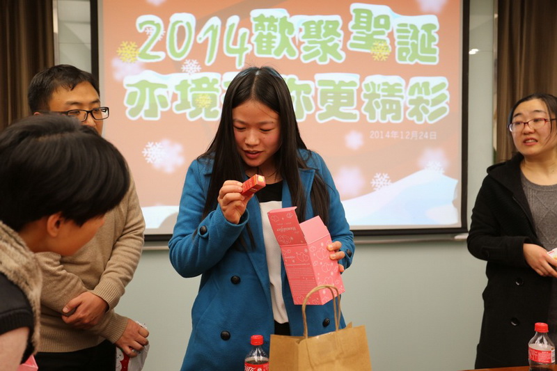 伴隨著浪漫的圣誕音樂,圣誕老人滿載著大家的期盼閃亮登場,開始派發(fā)寓意著幸福和快樂甜蜜的糖果、巧克力、愛心小禮物等。隨后,“圣誕拼拼樂”、“按圖索驥”、“互換禮物”等環(huán)節(jié)也陸續(xù)精彩呈現(xiàn)。
