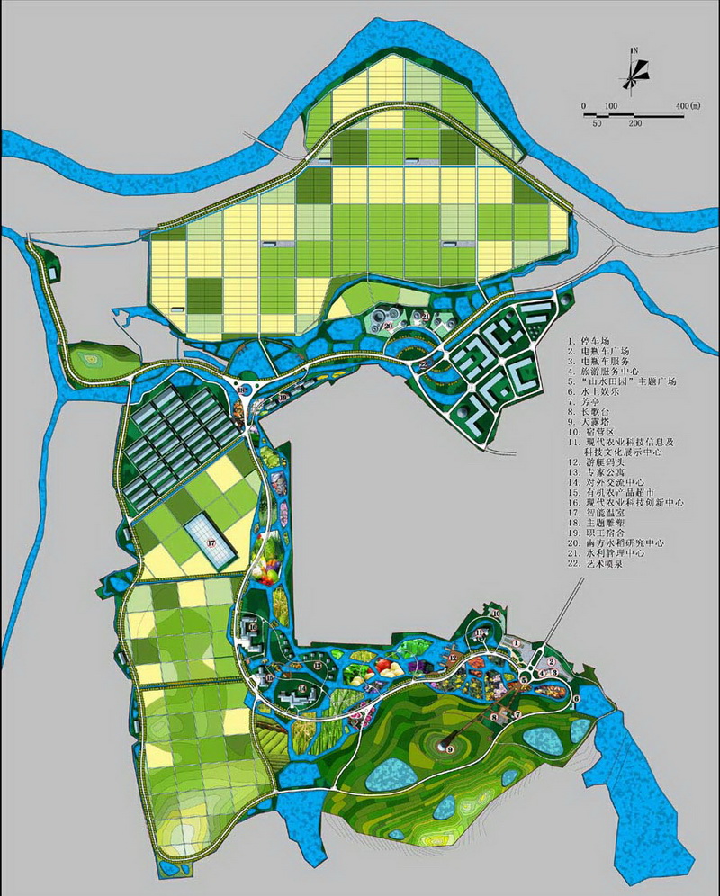 設計特色:設計針對地方集中汛期和伏旱交替的氣候特點,以濕地化為主要技術(shù)手段,塑造典型的南方農(nóng)業(yè)科研試驗示范基地。