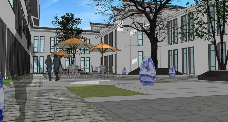 ■農(nóng)業(yè)科技交流中心庭院:建筑風格以灰瓦白墻及多重庭院組合體現(xiàn)江西地方鄉(xiāng)土特色。