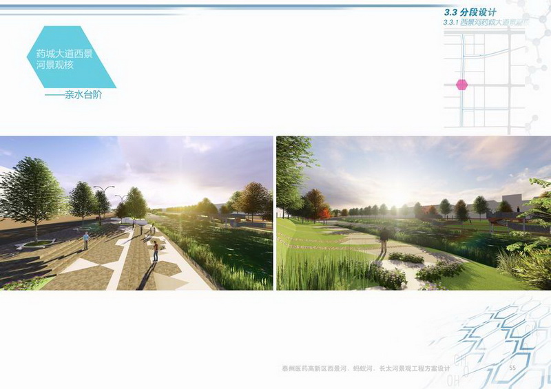 2014年8月29日,上海亦境建筑景觀有限公司以97.47的綜合得分,成功中標(biāo)江蘇泰州醫(yī)藥高新區(qū)西景河、螞蟻河、長太河景觀工程方案設(shè)計(jì)及施工圖設(shè)計(jì)項(xiàng)目。方案設(shè)計(jì)從“水”與“岸”著手,譜寫題為“自然之河、新綠之岸”的和諧樂章。
