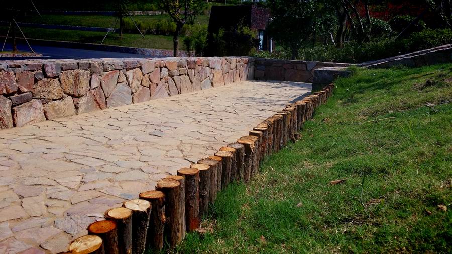 設(shè)計(jì)采用銹鋼板、毛石等材料,在重要視覺節(jié)點(diǎn)處設(shè)立景觀標(biāo)識,豐富空間要素,給游人以良好的景觀體驗(yàn)。入口處折型銹鋼板擋墻,結(jié)合融合標(biāo)識系統(tǒng)、地形防護(hù)的功能,是停車場在燕山南路上重要的視覺節(jié)點(diǎn)。