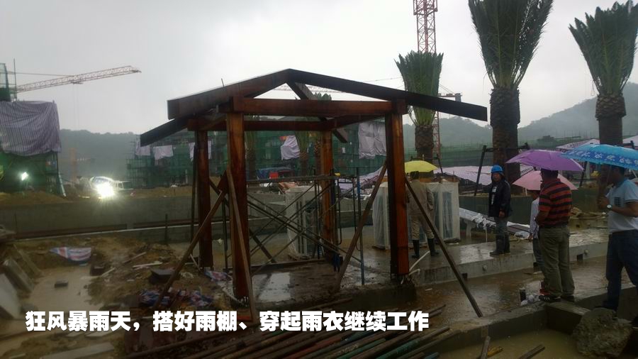 面對高溫多雨的天氣條件、多專業(yè)交叉施工的工作面、反季節(jié)種植等多種不利因素,亦境遠(yuǎn)洲墅項目組制訂了“三班倒”作業(yè)制、分區(qū)包干責(zé)任到人等制度,并通過搭建施工雨棚、采用高溫防護(hù)措施及周密詳盡的技術(shù)解決方案,確保了工程施工進(jìn)度與質(zhì)量。