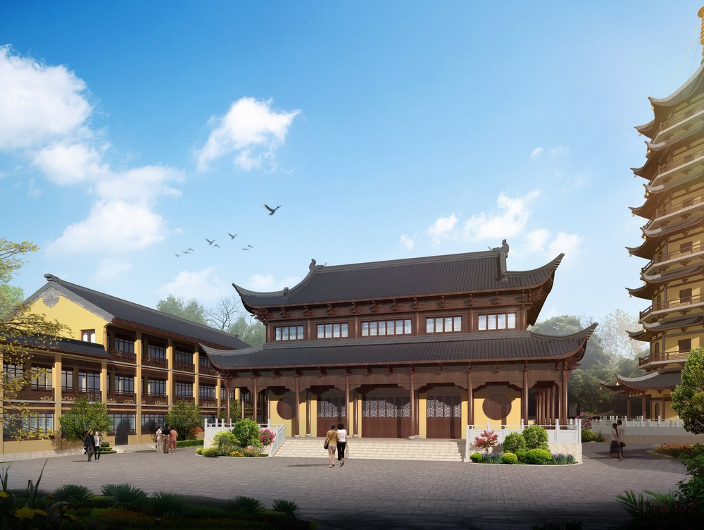 (1) 寺院遵循傳統(tǒng)江南禪宗寺院的布局形式,保留原有寺院形制,完善寺院總體功能空間布局。