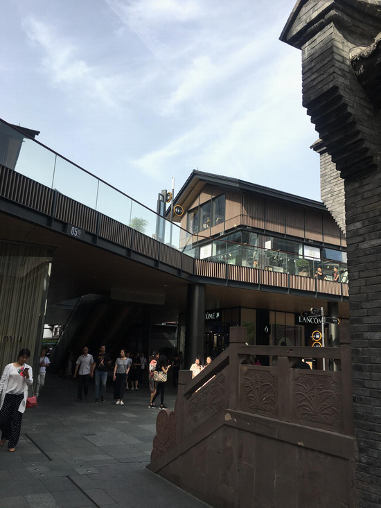 太古里是融合城市人文、創(chuàng)意時尚都市生活和可持續(xù)發(fā)展的商業(yè)綜合體,在國內(nèi)設(shè)計界備受關(guān)注。整體規(guī)劃上通過快里和慢里構(gòu)成的開放式、低密度街區(qū)購物中心??炖锸秦炌ㄕ麄€街區(qū)的主要動線,連接時尚人潮廣場的潮流脈向。慢里是圍繞大慈寺的慢生活流線,定制的是愜意休閑,美食街區(qū)的生活里巷。