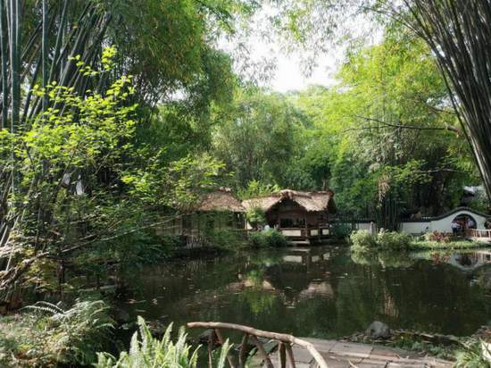 杜甫草堂是杜甫流寓成都時的故居。詩圣在此居住近四年,創(chuàng)作了上百首詩歌,被視為中國文學(xué)史上的“圣地”。園內(nèi)亭臺林立,古木參天,主要景點有詩史堂、工部祠等,杜甫當年的茅屋故居,是借鑒川西民居的特點復(fù)建的,如今成為了杜甫草堂的標志性景觀。曾經(jīng)通過度娘,屢次借鑒杜甫草堂的園林建筑為我們設(shè)計作品中的藍本。這次近距離鑒賞,小伙伴們均不失良機,多角度頻舉相機,收集一手素材。