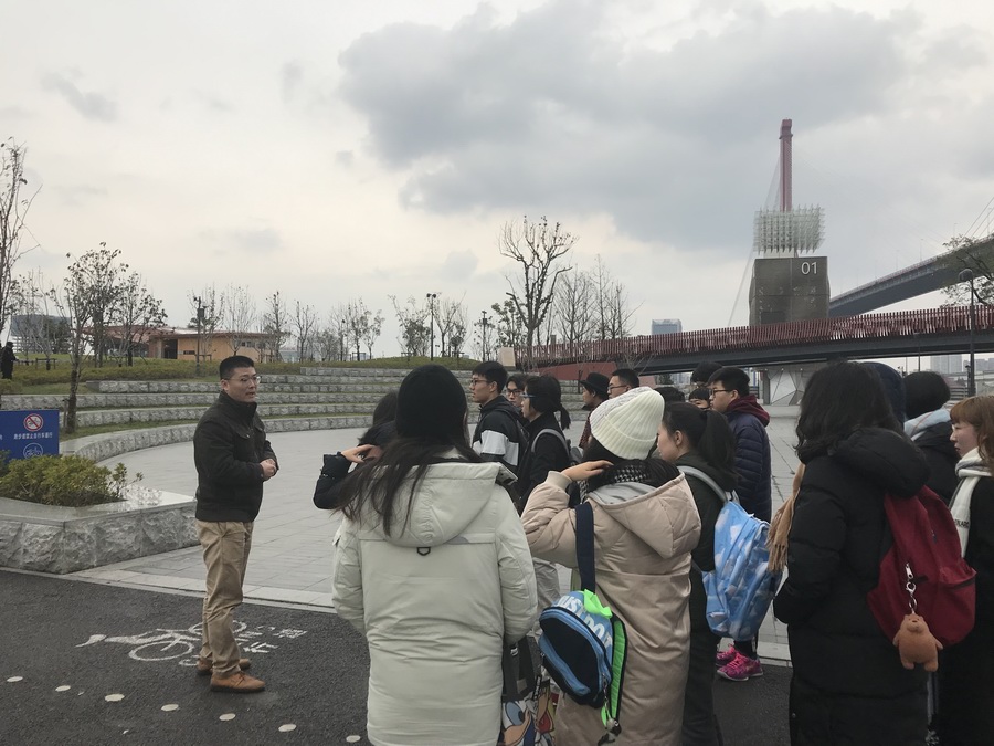 兩位設(shè)計(jì)師細(xì)細(xì)講述浦江歷史、碼頭風(fēng)貌,從防汛墻景觀工程處理、地面鋪裝材料運(yùn)用、濱水景觀植物配置、工業(yè)遺址景觀規(guī)劃等方面為學(xué)生們進(jìn)行了詳細(xì)介紹,以深入淺出的講解闡述了如何將這些碼頭遺址以新的語言、新的詮釋,衍生新時(shí)代的繁花似錦,展示新的浦江風(fēng)貌。通過對(duì)風(fēng)景園林設(shè)計(jì)的獨(dú)到見解,帶領(lǐng)同學(xué)們感受了老碼頭的脫胎換骨。