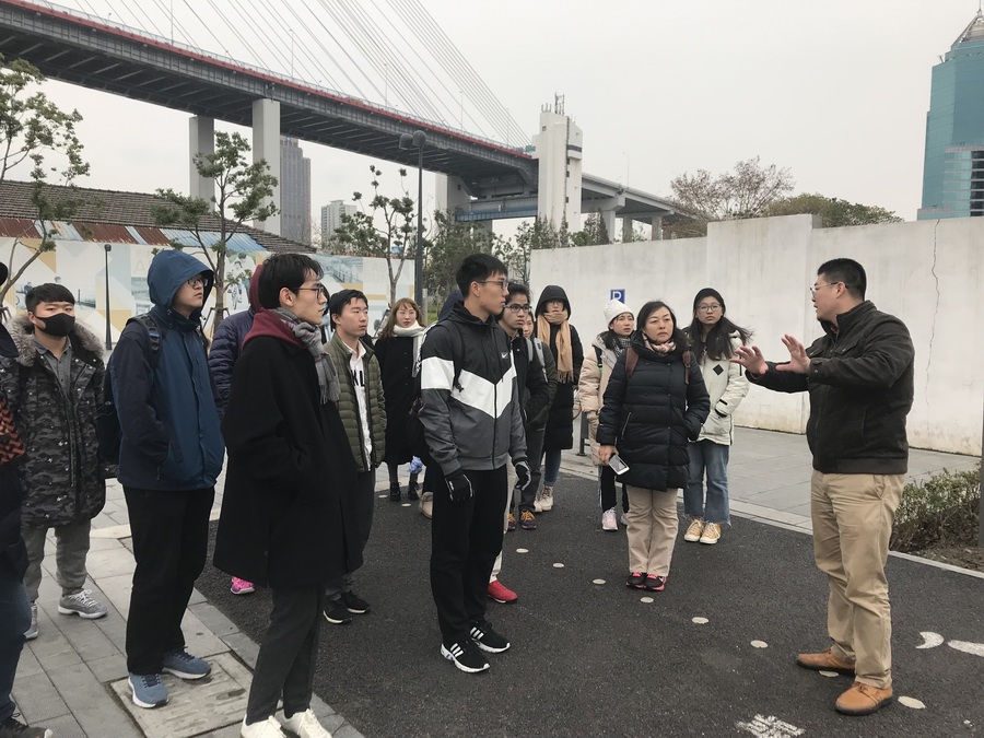 上海亦境景觀院副院長(zhǎng)戰(zhàn)旗、中棧地塊主創(chuàng)設(shè)計(jì)師張明明與上海交大17位2018級(jí)新生及李玉紅老師相約黃埔江畔洋涇碼頭,一起走進(jìn)洋涇、中棧的前世今生。