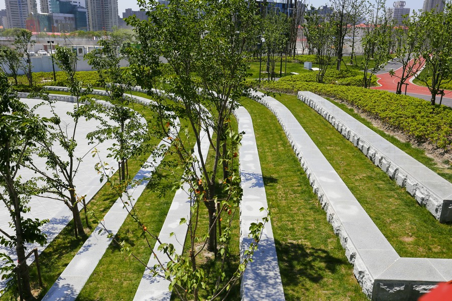 設(shè)計(jì)以“起點(diǎn)揚(yáng)帆·綠活洋涇”為主題,秉承在森林中運(yùn)動(dòng)的理念,以運(yùn)動(dòng)、休閑、觀景為特色,300m林蔭慢跑環(huán)串聯(lián)各個(gè)活動(dòng)節(jié)點(diǎn),形成簡(jiǎn)潔開放、精致生態(tài)的綠地景觀。