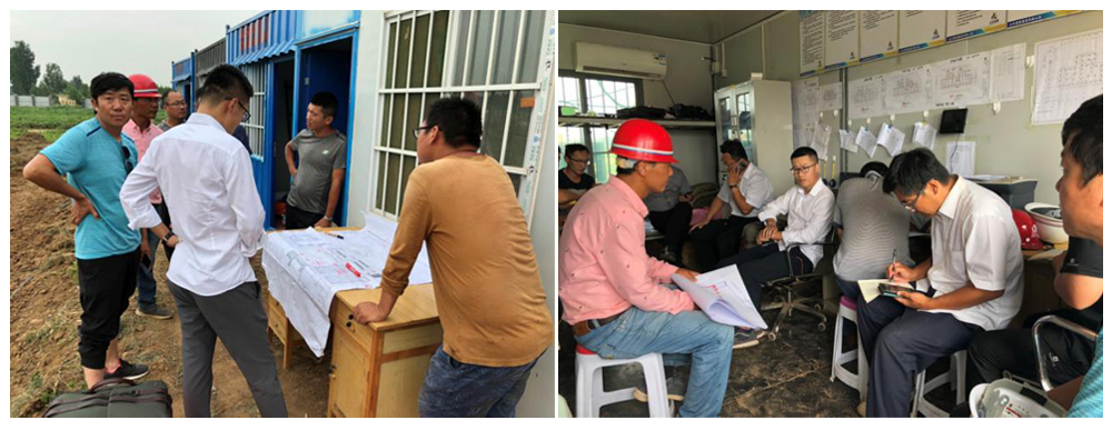 與建設(shè)方、總包進(jìn)行現(xiàn)場(chǎng)協(xié)調(diào)會(huì)