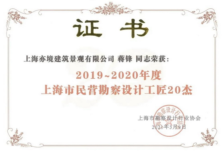 近期,上海市勘察設(shè)計(jì)行業(yè)協(xié)會(huì)公示了“2019-2020年度上海市民營勘察設(shè)計(jì)企業(yè)20強(qiáng)推介活動(dòng)”的評選結(jié)果,亦境榮獲上海市民營勘察設(shè)計(jì)企業(yè)20強(qiáng)、工匠20杰、優(yōu)秀設(shè)計(jì)項(xiàng)目20佳三項(xiàng)榮譽(yù)。