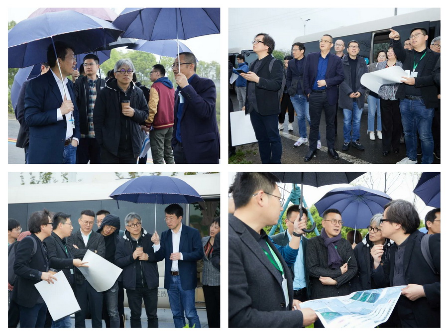 下午,學術委員會委員與建筑師團隊一行,對溧陽森林望樓的選址進行了現(xiàn)場踏勘。經(jīng)過幾個小時車行與步行結(jié)合的實地感知,望樓基地選址的多樣性也得以展現(xiàn),有的基地位于初具形態(tài)的城市林地,有的基地位于山花爛漫的丘陵坡地,還有的基地位于塘田交錯的漁耕農(nóng)地。踏勘過程中,建筑師們還對基地與高鐵線路、高速公路、現(xiàn)狀植被以及周邊村落等關系,與相關部門做了初步討論與交流。