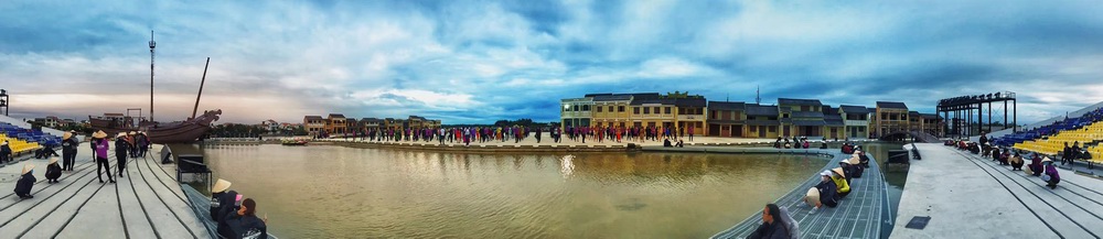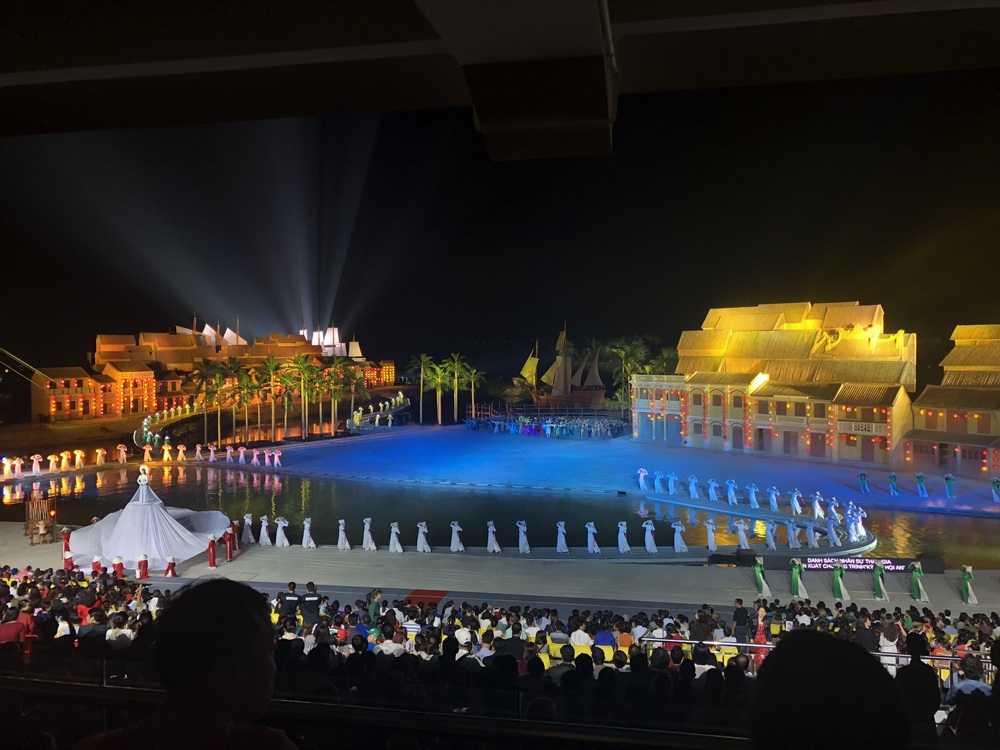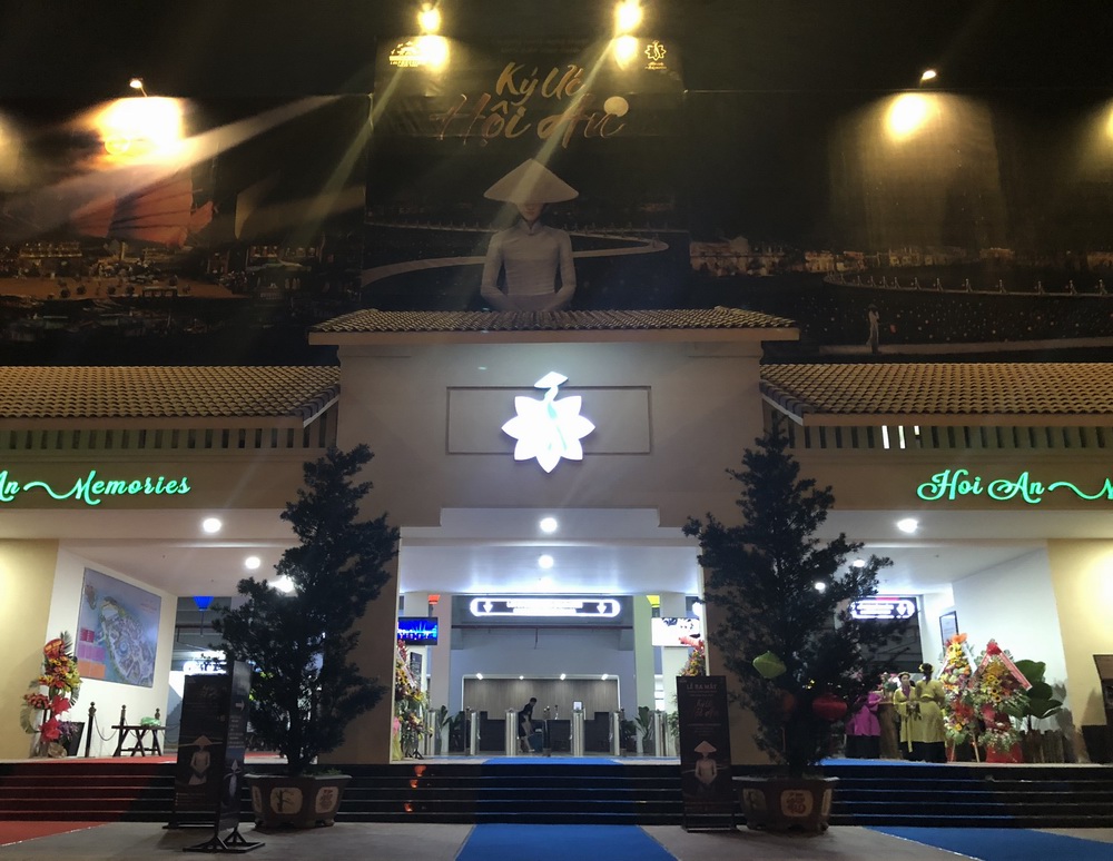 此次演出的室外實(shí)景演藝區(qū)是越南“印象會(huì)安”主題樂園項(xiàng)目的首期工程,位于整體項(xiàng)目用地的東端,占地面積約33畝,觀眾席設(shè)普通座位3300個(gè),VIP座位90個(gè)。舞臺(tái)區(qū)利用機(jī)械方式將變化豐富的固定布景、升降布景及移動(dòng)布景,與大型歌舞、多媒體水景燈光秀相結(jié)合,完美詮釋了會(huì)安古城百年的變遷,以及中、日、歐各種文化風(fēng)格與會(huì)安當(dāng)?shù)卦侥衔幕娜诤?。震撼的演出效果激發(fā)了觀眾的熱烈反響,也得到中越藝術(shù)和媒體領(lǐng)域的廣泛贊譽(yù)。本項(xiàng)目的大型室外實(shí)景山水演出,已經(jīng)由越南政府確定為向世界各國(guó)元首獻(xiàn)禮的越南文化展示項(xiàng)目。