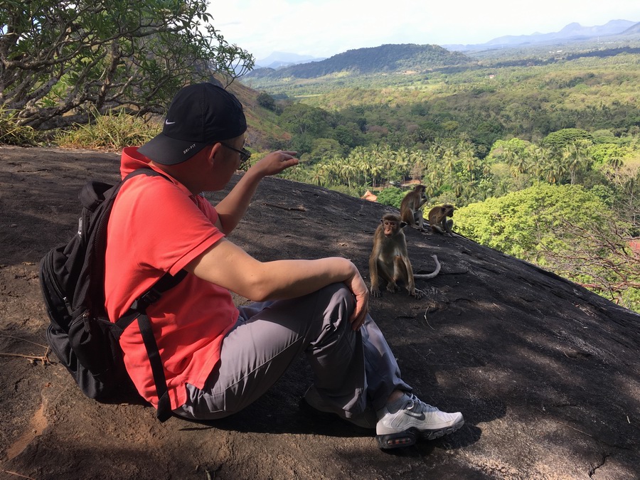 丹布勒石窟寺 (Dambulla Cave Temple),是斯里蘭卡的朝圣之地,擁有220年的歷史。這座佛窟包括五所圣堂,是斯里蘭卡最大的、保存最完整的洞穴廟宇。其歷史以波羅密語(yǔ)記載于第一窟的入口處。覆蓋面積達(dá)2100平方米的壁畫及157尊雕像,極具宗教藝術(shù)價(jià)值,展示了佛教藝術(shù)的魅力。丹不勒石窟寺的壁畫是令人贊嘆的,從石壁到石洞頂都涂上了漆,尤其是石洞頂上的幾何繪畫,線條流暢。眺望遠(yuǎn)方,一個(gè)個(gè)小土包好似貴州的萬(wàn)峰林。路上的猴子,似乎已經(jīng)習(xí)慣了游客給他們拍照。