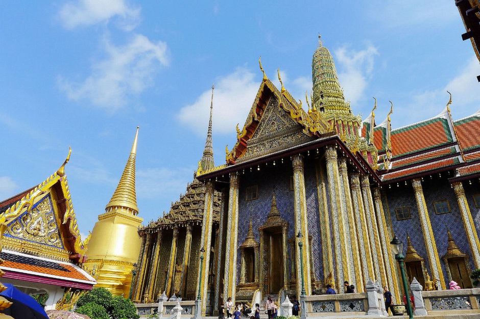 舉世聞名的大皇宮緊鄰著湄南河,是曼谷市中心內一處大規(guī)模的古建筑群,其占地總面積218400平方米,大小共計28座建筑物?;蕦m內建筑群組布局錯落,為暹邏式風格,匯集了泰國繪畫、雕刻和裝飾藝術的精華,被稱為“泰國藝術大全”。大皇宮也是歷代王宮中保存最完美、規(guī)模最大、最有民族特色的王宮。