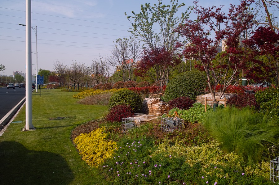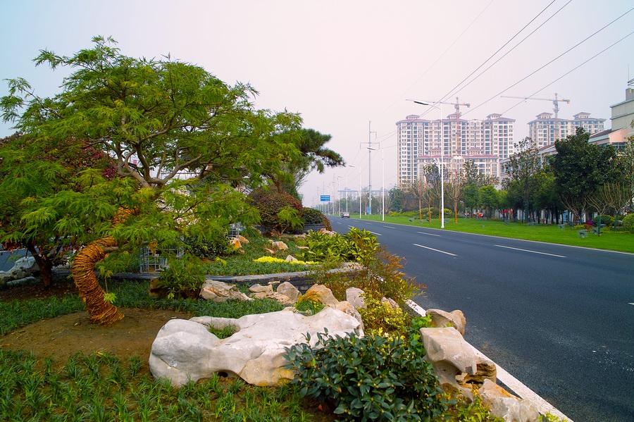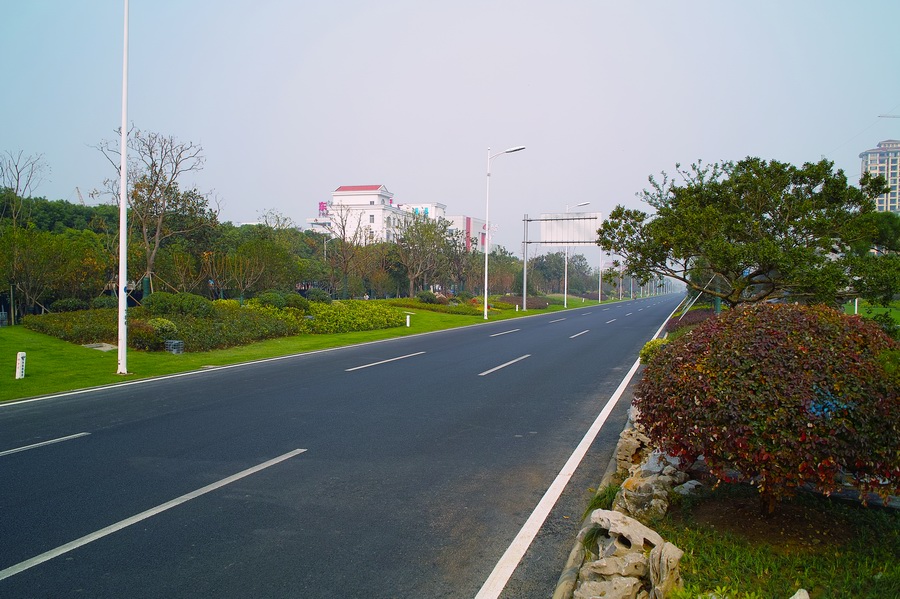 金港大道位于張家港市,北起南二環(huán)路,南至西塘公路,全長3600米;道路斷面為四板五帶式,其中:中分帶寬5米,兩側(cè)主、輔道間綠化帶寬各20米,總綠化面積為21萬平方米。