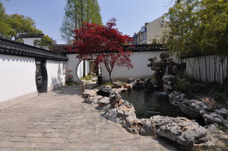 ■將“以水為脈,活水繞園”作為水系改造布局理念,并融合明末清初文人園簡潔樸實的理水手法,通過盆景園中“半畝方塘”營造“天光云影共徘徊”的景致,再現(xiàn)了“求理”、“適意”的古韻。園內(nèi)形成池、泉、溪、渠相聯(lián)通的內(nèi)循環(huán),增加古園靜態(tài)空間的流動性;同時聯(lián)通園池與城市河道形成外循環(huán),為醉白池提供了“源頭活水”,讓園內(nèi)景觀水體共同參與到城市水體的循環(huán)代謝中。
