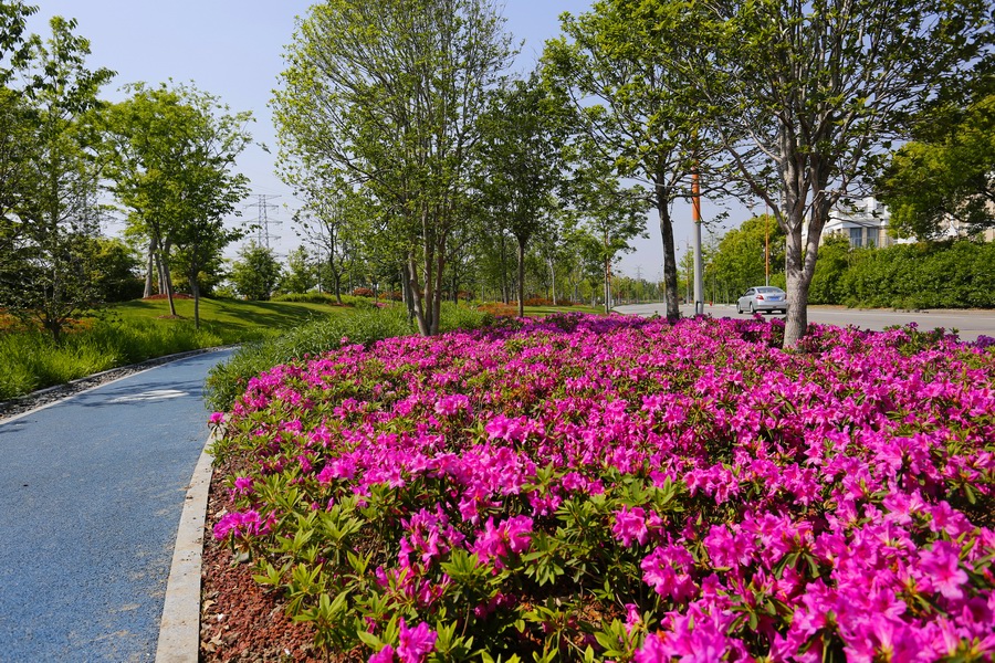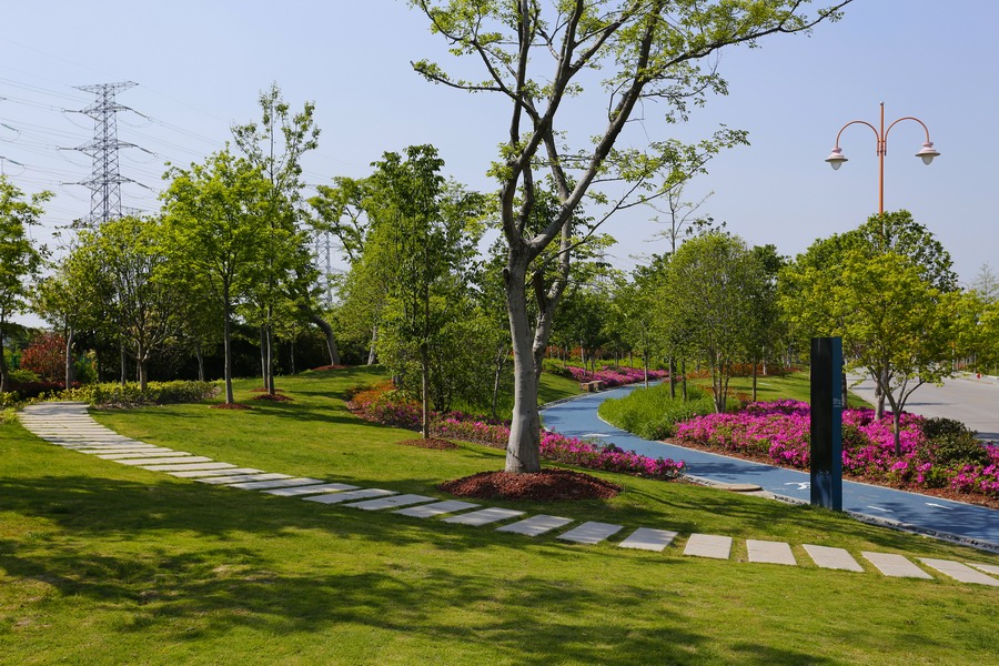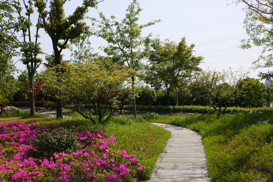 改造之后,無趣的堤壩小路消失了;取而代之的是結(jié)合地勢,翩翩曼舞在綠地中的健身康體漫步道。步道兩側(cè)開滿常年不斷的鮮花,春季的大濱菊、夏季的紫薇、秋季的金光菊、冬季的臘梅,四季紛呈,步移景異。讓健身和休閑漫步成為一種洋溢著幸福感的體驗(yàn),仿佛人生也因此而美麗綻放!