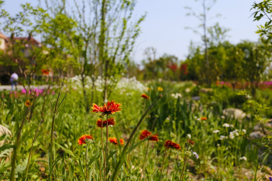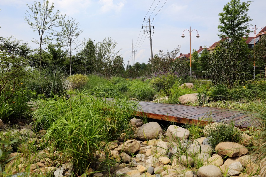 并通過木棧道、透水鵝卵石、汀步等鋪裝,游人們可以走進(jìn)四季繽紛、如夢似幻般的雨水花園,與那些忘我綻放的精靈們細(xì)語交談……