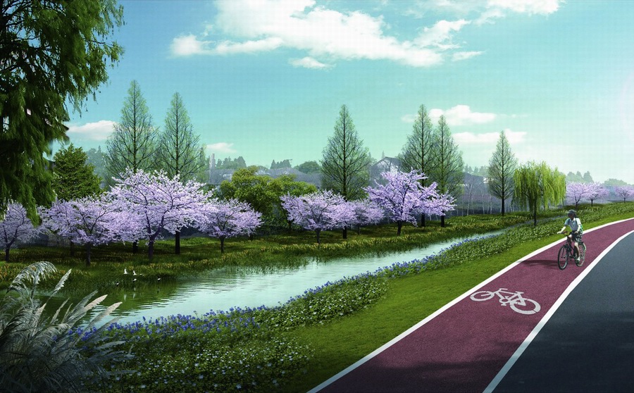 兩側(cè)40里浪漫櫻花帶,給人不一樣的景觀體驗(yàn)。設(shè)計(jì)共種植櫻花約4000株,主要選擇櫻花常用品種約20種。 |