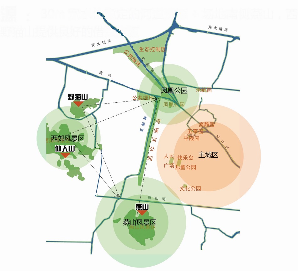 通過加強(qiáng)河道兩岸功能空間和視線通廊的溝通與引導(dǎo),通融”水”、 "綠”、"城”三大景觀界面,提升濱水岸線景觀、增設(shè)碼頭等節(jié)點(diǎn)空間,實(shí)現(xiàn)水綠城互動(dòng)。