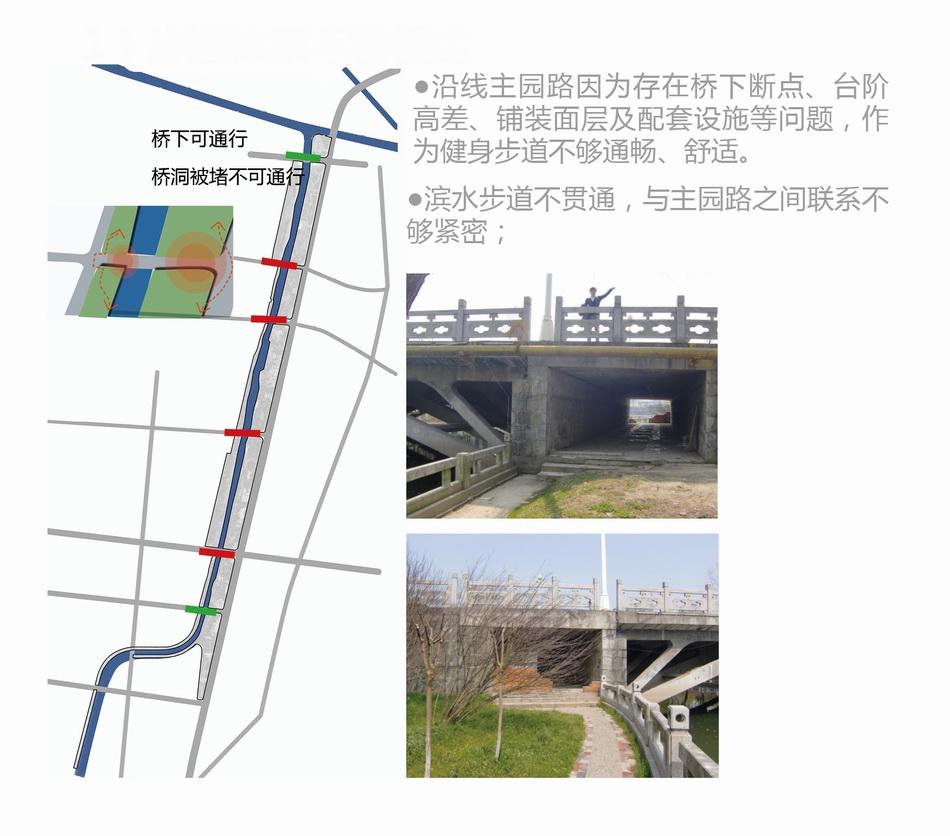 ↑ 通過連通橋下、連接步道、放緩坡道等手法,打通斷點(diǎn),優(yōu)化路徑