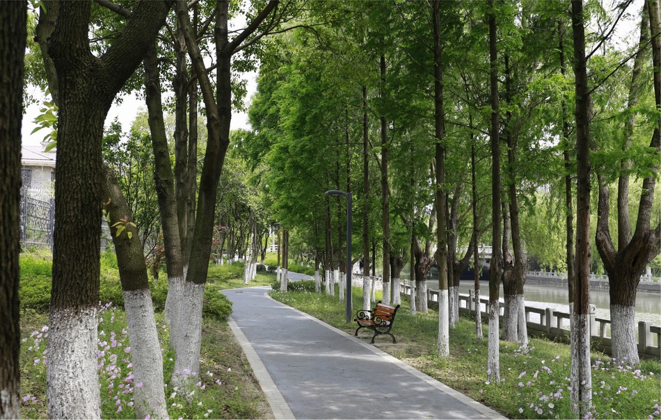 沿路添植落葉喬木和特色花灌木,結(jié)合芳香植物種植打造林蔭健康道;沿路布局指示標(biāo)識(shí)、休憩坐凳、照明、環(huán)衛(wèi)等配套服務(wù)設(shè)施。