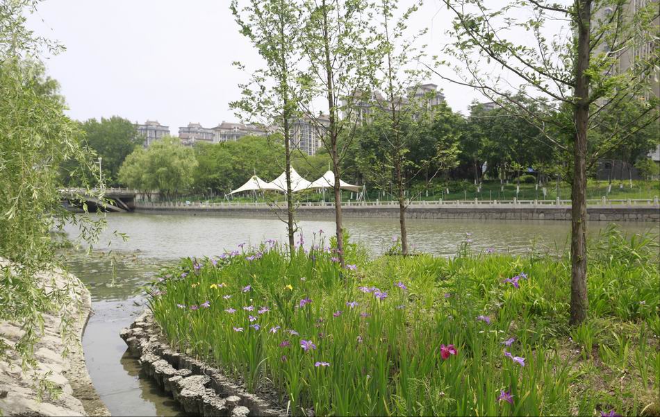 ↑ 利用洪水位高差形成的水陸交錯(cuò)帶,種植鳶尾等植物