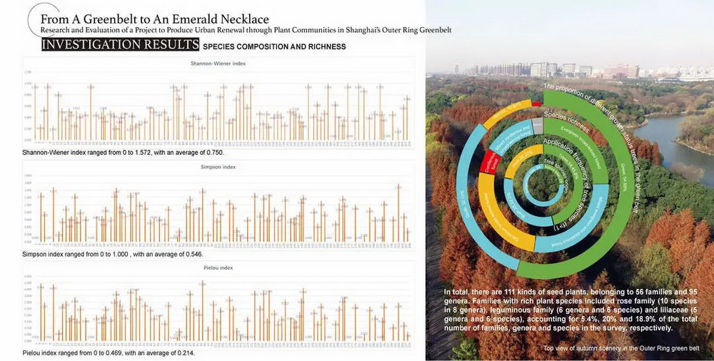 其中,從綠帶到綠色項鏈——上海外環(huán)林帶植物群落評估與更新研究獲得規(guī)劃分析類卓越獎。