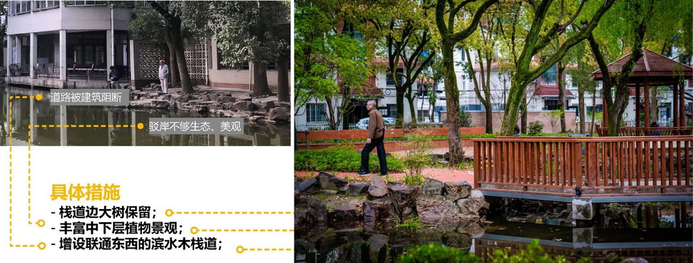 ↑ 湖邊棧道改造前后
