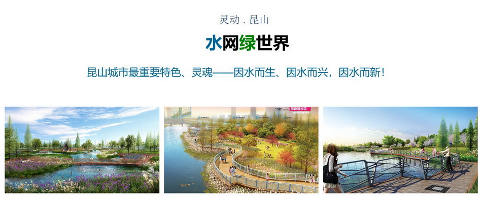 以“水網(wǎng)綠世界”為主題,做足水文章。圍繞吳淞江、婁江、致塘河等水系,通過(guò)三大策略,打造中心城區(qū)“一軸、兩廊、四環(huán)”的水景觀(guān)體系和“3橫2縱”的濱水線(xiàn)性公園格局,融水生態(tài)、水景觀(guān)、水文化于一體,營(yíng)造“藍(lán)綠交響、水路相融、水城一體”的昆山園林景觀(guān)特色。