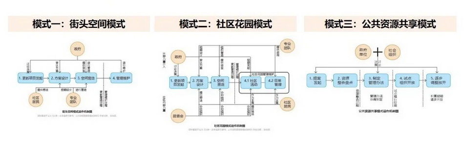 (2)精準(zhǔn)施綠:實(shí)施“查漏”-“擇地”-“補(bǔ)綠”三步走路徑,通過(guò)前期已建公園綠地量的評(píng)估分析,在公園服務(wù)半徑未覆蓋區(qū)域內(nèi),選擇匹配閑置地,并根據(jù)閑置地用地性質(zhì)、使用類(lèi)型和周邊居民訴求形成3大精準(zhǔn)覆綠模式: