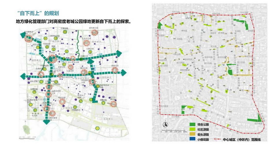 地方綠化管理部門(mén)對(duì)高密度老城公園綠地更新自下而上的探索,在總規(guī)、綠規(guī)指導(dǎo)下, 撥點(diǎn)囤綠,見(jiàn)縫插綠,挖潛補(bǔ)綠,以精細(xì)化的小微公園完善老城區(qū)游憩體系。規(guī)劃引入社區(qū)管理者、使用者、規(guī)劃設(shè)計(jì)者,實(shí)行全過(guò)程多方參與,共同打造美麗家園。