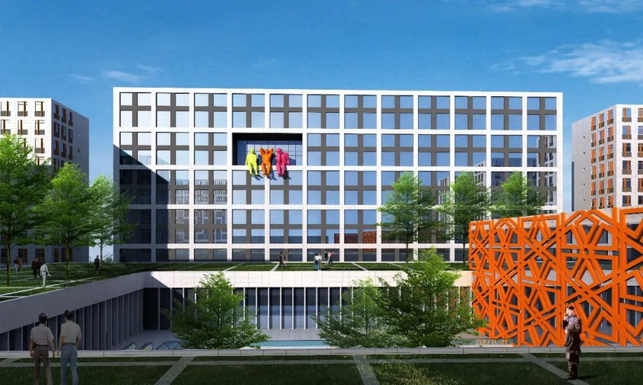 通過體塊穿插和特色表皮肌理等體現(xiàn)互聯(lián)網(wǎng)文化元素