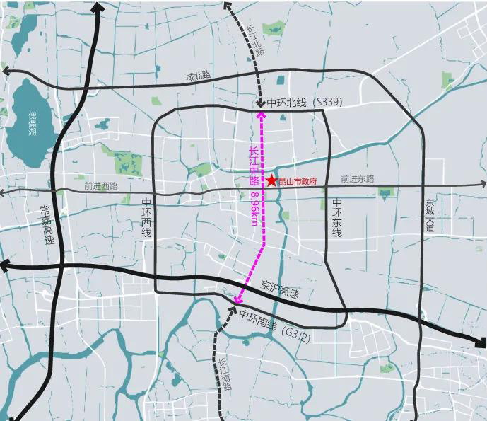 長江路是昆山市域旅游交通、門戶展示的南北向放射干線公路,是昆山市重要的形象展示帶。