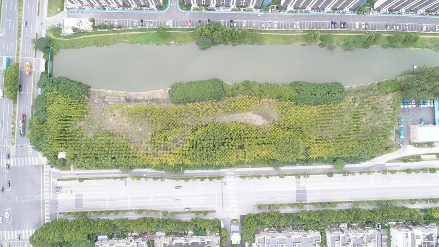 該項(xiàng)目位于松江區(qū)西側(cè),文翔路與辰塔路交匯的西南角綠地,占地約 15000 ㎡,其中場地中有一塊規(guī)劃社區(qū)基礎(chǔ)設(shè)施建設(shè)用地(5000 ㎡)?;貣|段植被密布,長勢一般,主要為銀杏與夾竹桃,西段建筑設(shè)施密集,包括環(huán)衛(wèi)站、閘站管理建筑、臨時(shí)廠房等?;刂苓厼榫用裥^(qū),3公里圈層內(nèi)有昆秀湖、松江中央公園、上海視覺藝術(shù)學(xué)院、泰晤士小鎮(zhèn)、英格蘭休閑廣場等。