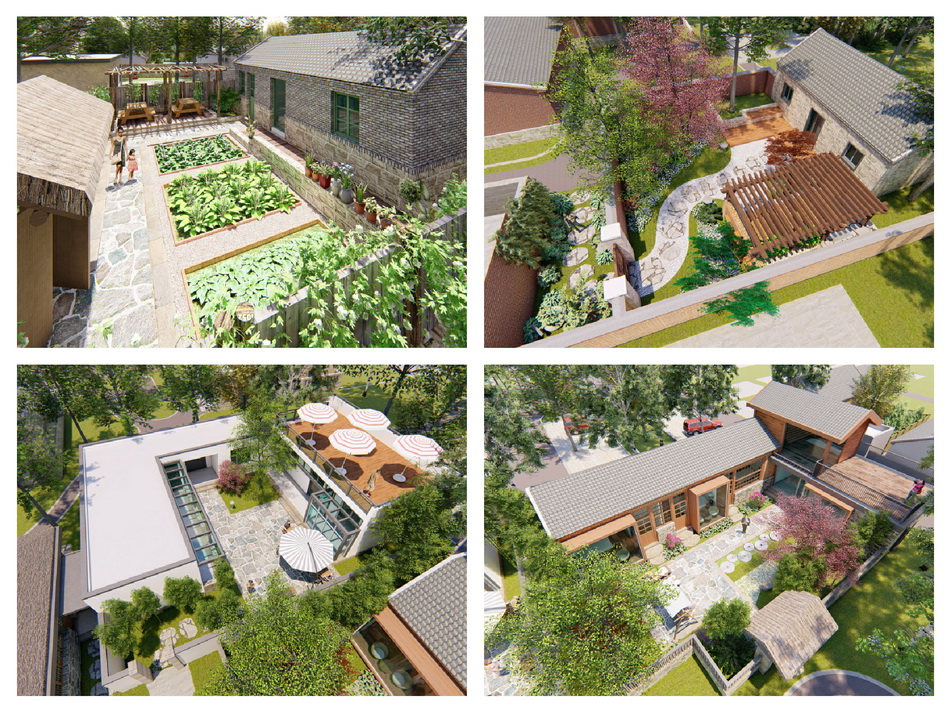 保留空地原有空間風(fēng)貌,形成村民活動(dòng)的集中廣場(chǎng)。南面建設(shè)舞臺(tái)和休憩亭廊,為村民開會(huì)和文化演藝提供場(chǎng)地,形成整個(gè)區(qū)域的產(chǎn)業(yè)文化中心。