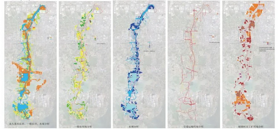張家港河生態(tài)走廊規(guī)劃北起楊林塘,南至汪洋蕩 , 全長 42 km,規(guī)劃面積約 1895 hm2,濱河兩側腹地 5 米 ~300 米不等,沿線現狀用地類型以基本農田、一般農用地、城鎮(zhèn)村建設用地為主。