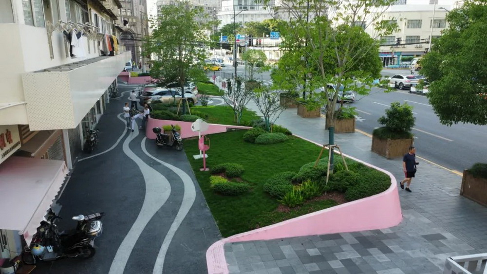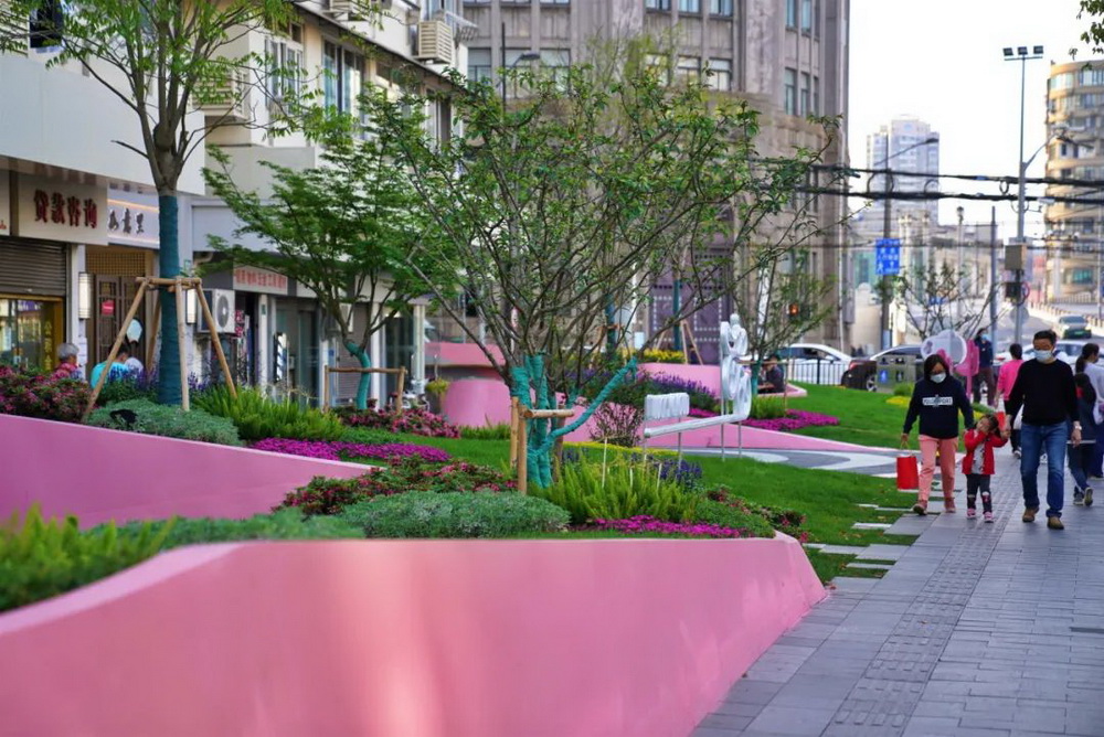▲云之丘花園的“粉”裝快閃(圖片源自:外灘街道辦事處)