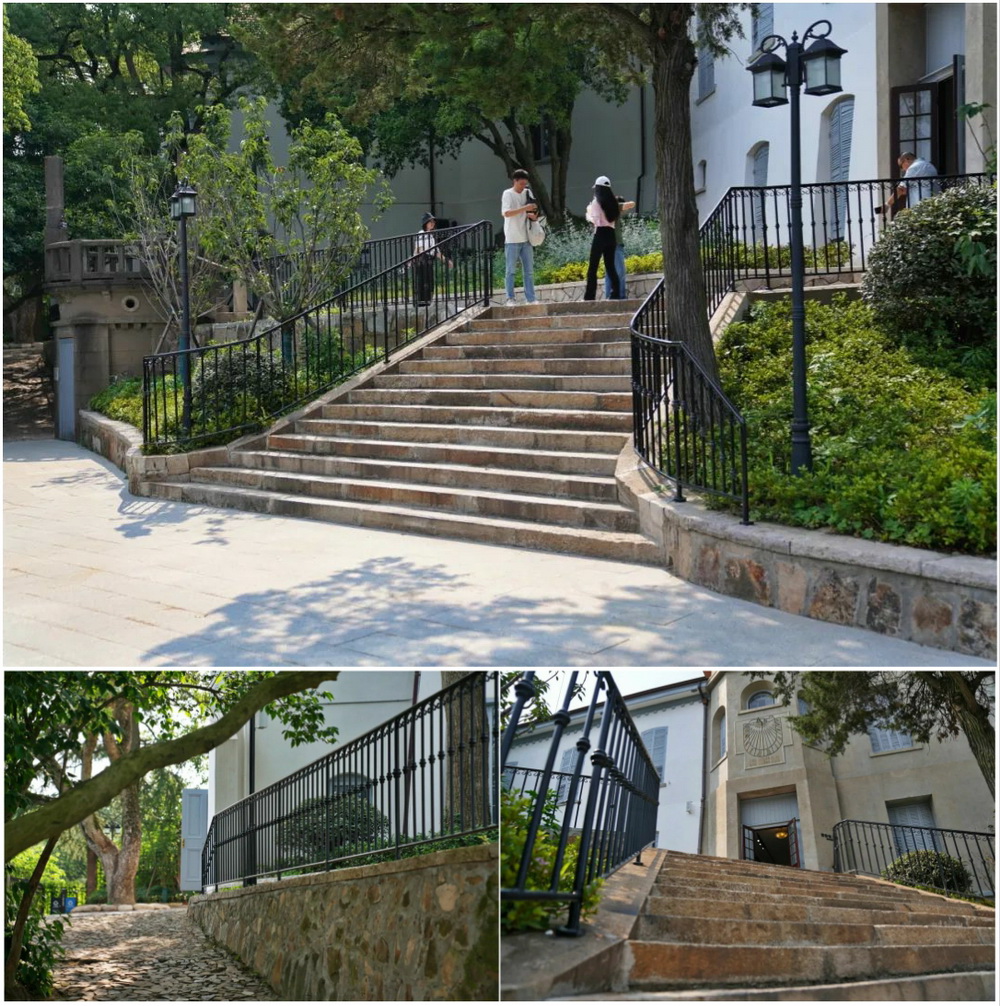 重新規(guī)劃臺階方向,將人群向天文臺主入口引導(dǎo),優(yōu)化主游線;加厚教堂一側(cè)綠化,提升景觀舒適度;保留現(xiàn)狀大樹的同時,保證人群的集散空間。