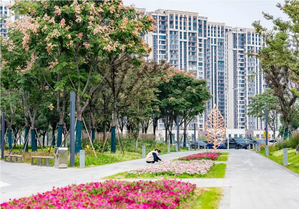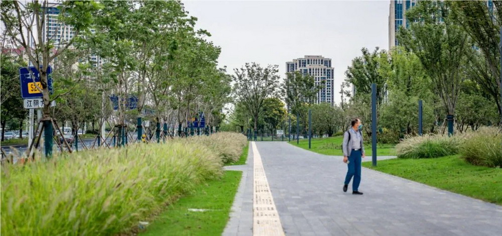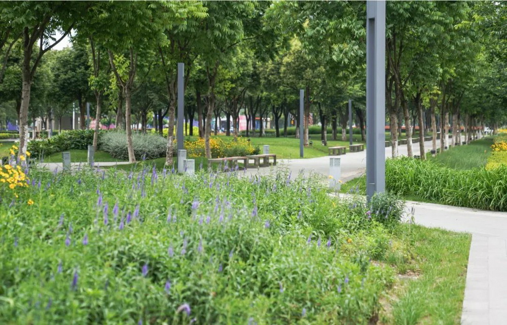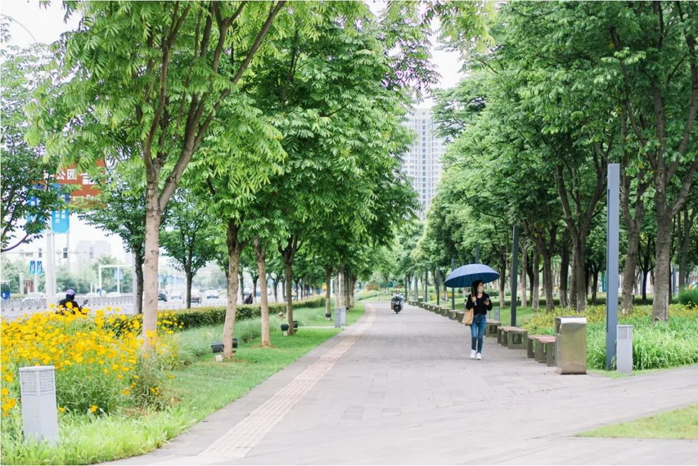 拓寬人行道,通過增加“近自然”林蔭花境帶,與非機(jī)動(dòng)車道進(jìn)行軟隔離,提升道路的林蔭率和步行舒適性,打造“會(huì)呼吸的”線性花園帶。
