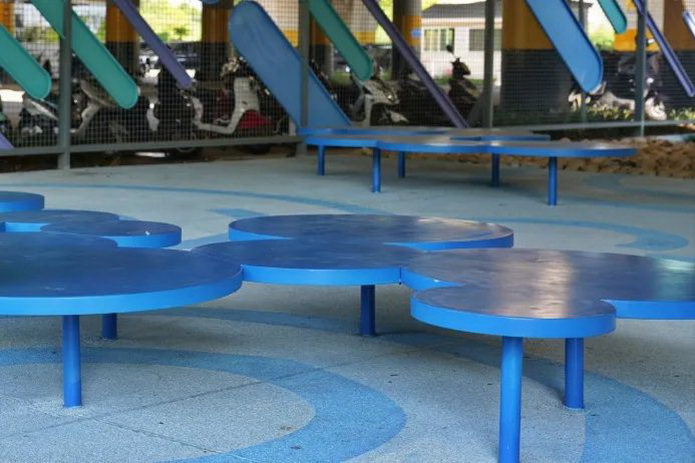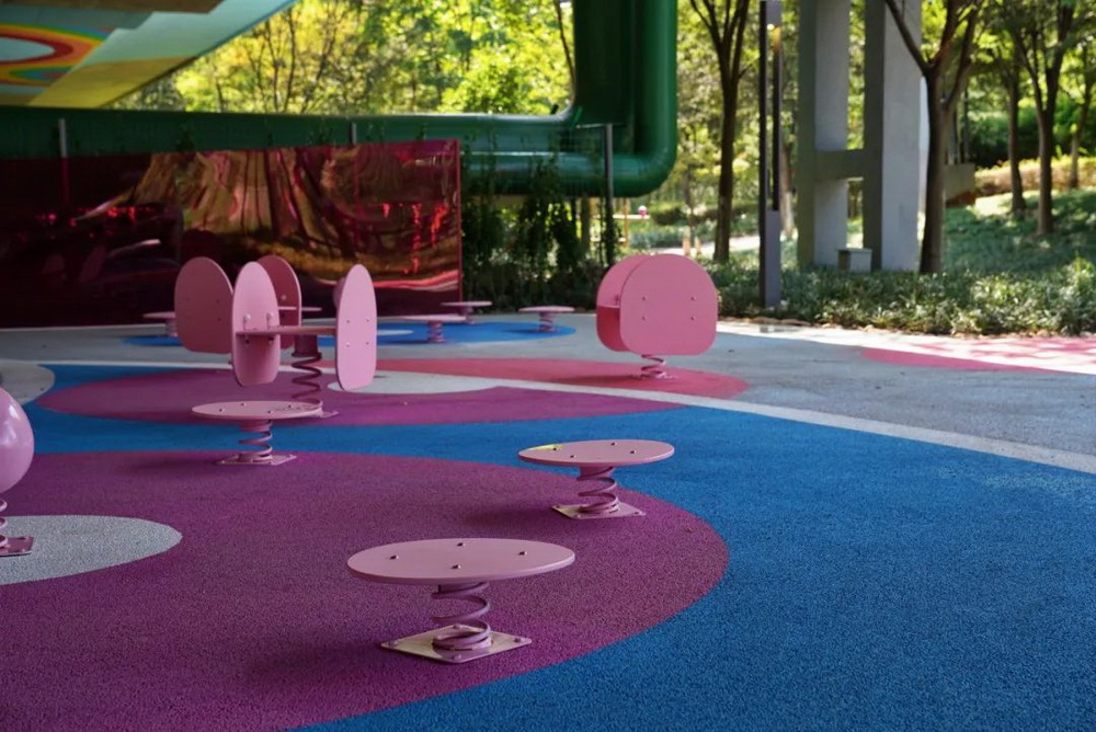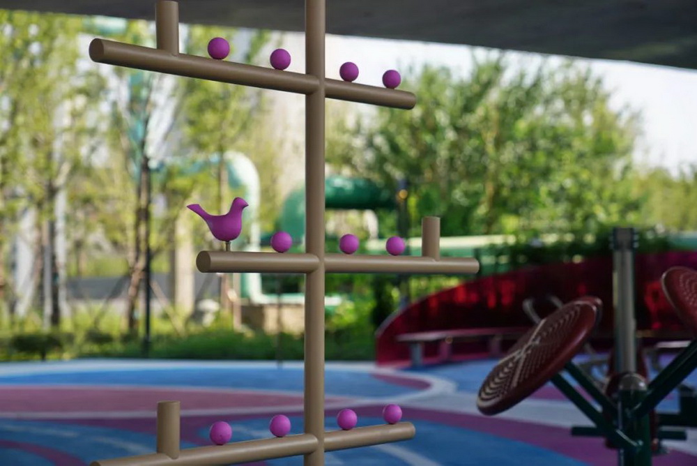以春分之時(shí)傳統(tǒng)活動(dòng)立蛋為原型,設(shè)計(jì)蛋形搖搖木馬以及平衡樁等平衡類游戲設(shè)施,搖擺的紫色也像極了春風(fēng)中微微顫動(dòng)的花苞。