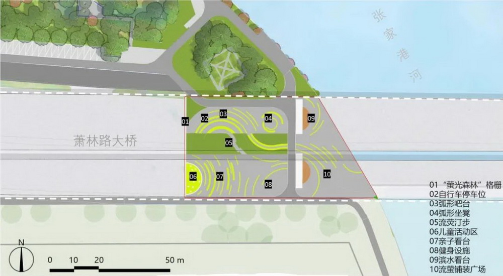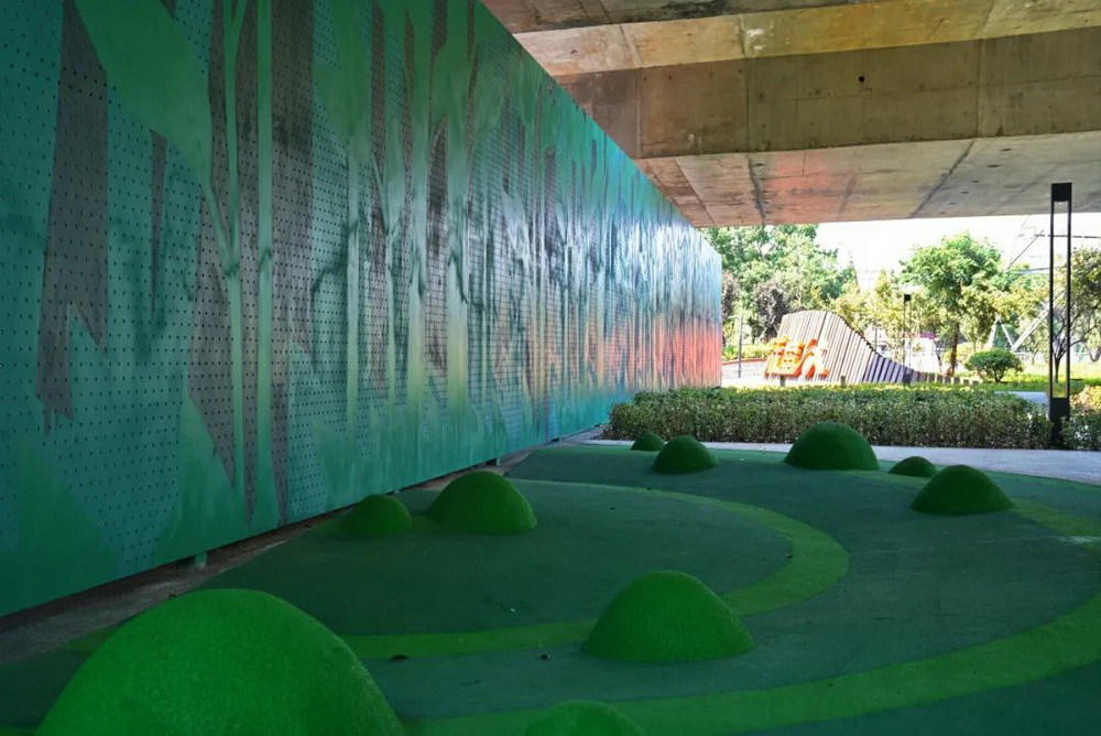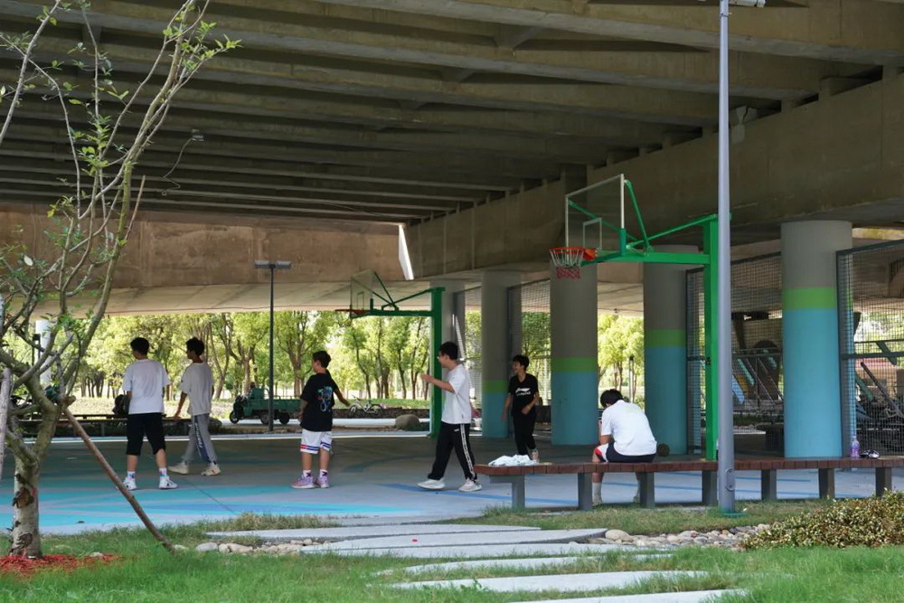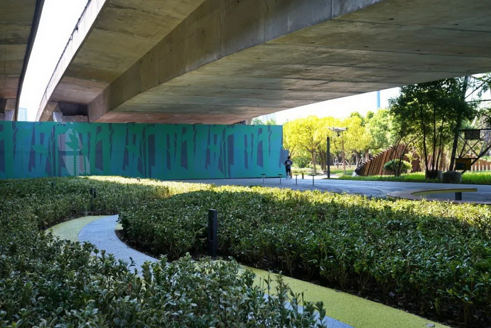 通過(guò)對(duì)橋下剩余空間的重新利用與盤活,將原本“灰暗”的閑置空間打造成為具有“自然趣”和“藝術(shù)范”的活力共享空間,集運(yùn)動(dòng)、休憩、自然與文化感知于一體的多功能空間。