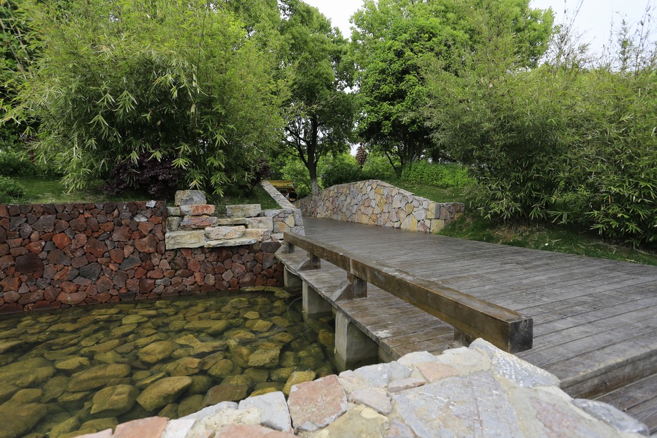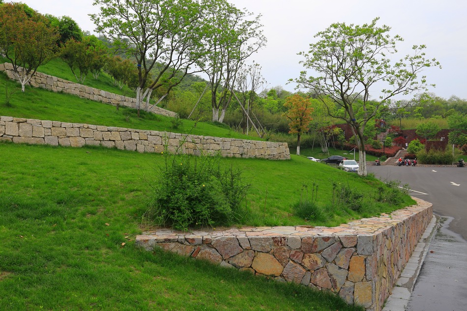 ■就地取材——利用現(xiàn)場(chǎng)保留的石材壘砌擋墻,形成臺(tái)地景觀,功能與景觀有機(jī)融合