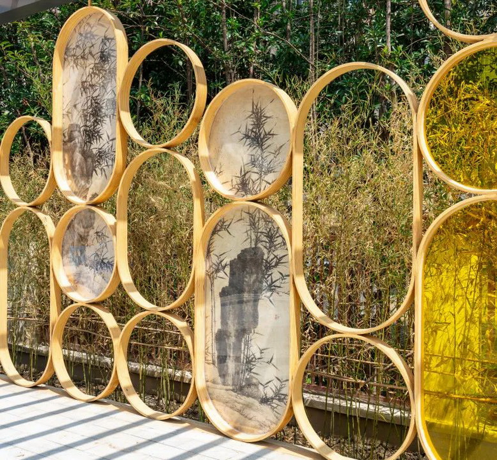 ▲建成后實(shí)景圖 -- 彩色玻璃透出的竹影與夏昶的畫竹相映成趣