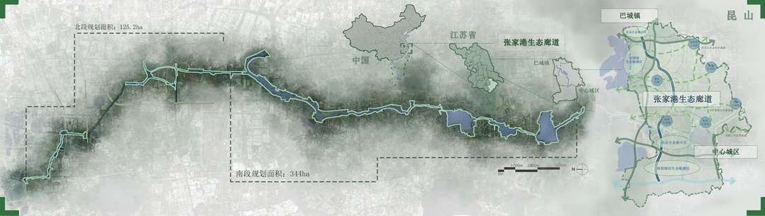 張家港河生態(tài)廊道,鏈接沿線的湖蕩、城市、水鄉(xiāng),是昆山市 “七橫四縱”生態(tài)網(wǎng)絡(luò)的南北重要廊道,全長42km,其中廊道北段為先行示范段,總長19km,面積約264hm2。