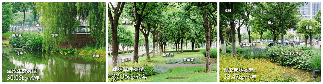 提高植被總覆蓋率,選用高碳匯鄉(xiāng)土樹種,構(gòu)建復(fù)層結(jié)構(gòu)并具有降噪、固碳、減霾功效的植物群落,發(fā)揮綠地滯留黑碳?xì)馊苣z的功效;
